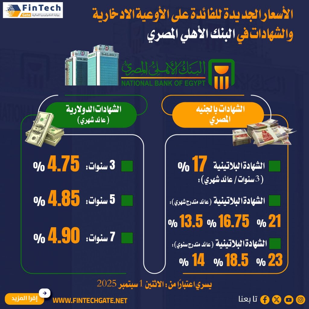 – تعديل سعر العائد على الشهادة البلاتينية بالجنيه المصري ذات العائد الشهري لمدة 3 سنوات ليصبح 17%