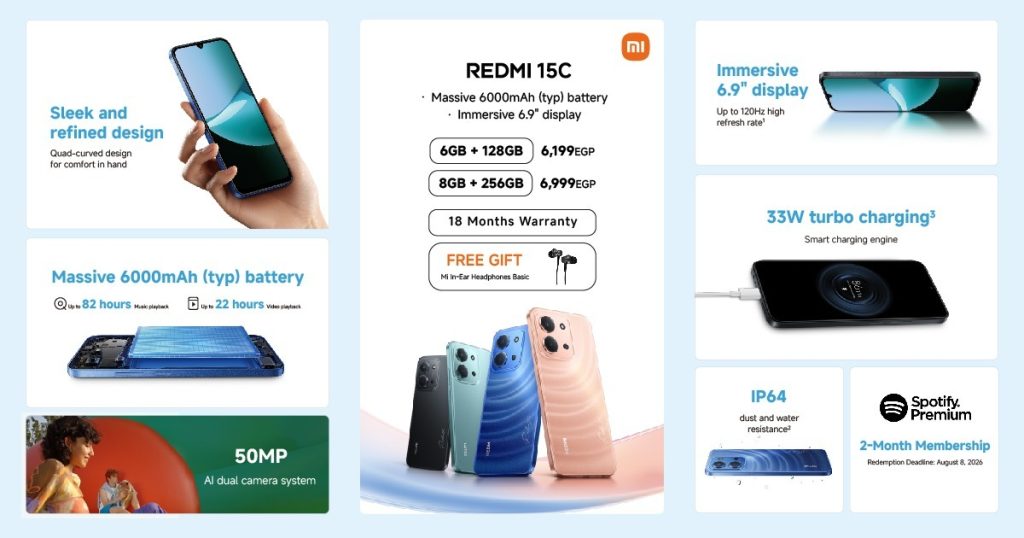 يتوفر هاتف Redmi 15C في السوق المصرية بأسعار تنافسية: