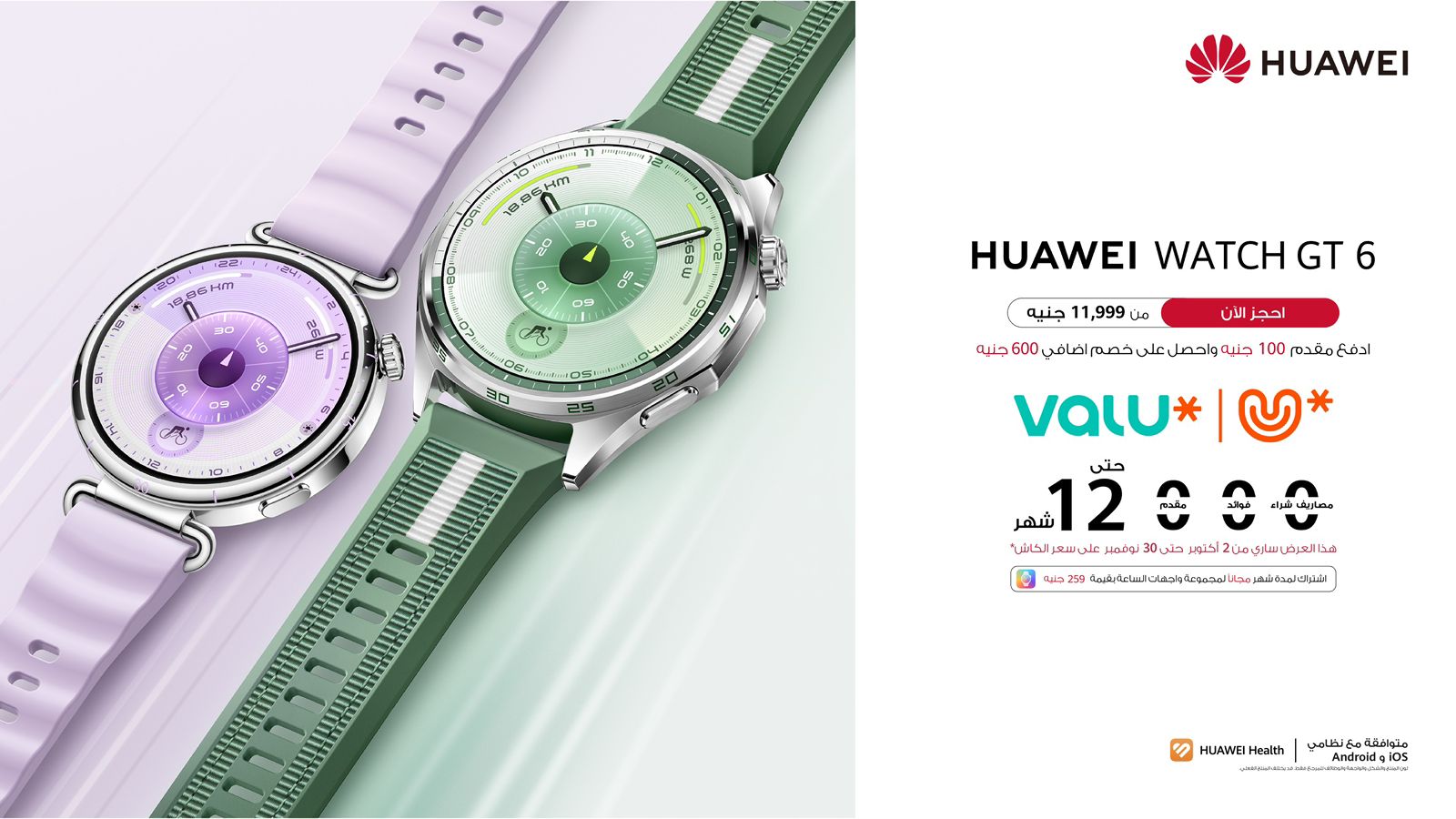 أعلنت «هواوي» بدء الحجز المسبق لسلسلة HUAWEI WATCH GT 6 في مصر، مع خيارات تقسيط مرنة عبر منصة «ڤاليو». وبالإضافة إلى ذلك، يتيح العرض دفع مقدم رمزي وصولًا إلى 100 جنيه، والحصول على خصم يصل حتى 1,200 جنيه. وعلاوة على ذلك، يسري العرض في المتاجر الرسمية والمتاجر المعتمدة والمتجر الإلكتروني لهواوي في الفترة المحددة. Huawei Consumer+1