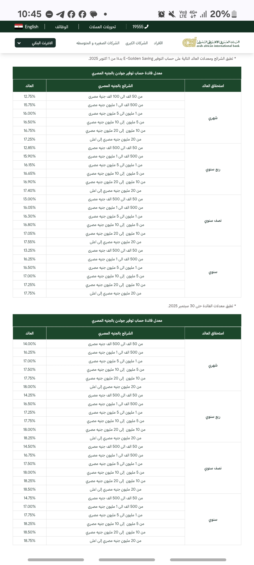 * من 10 ملايين إلى 20 مليون جنيه: من 16.25% إلى 16.50% — (+0.25 نقطة مئوية).