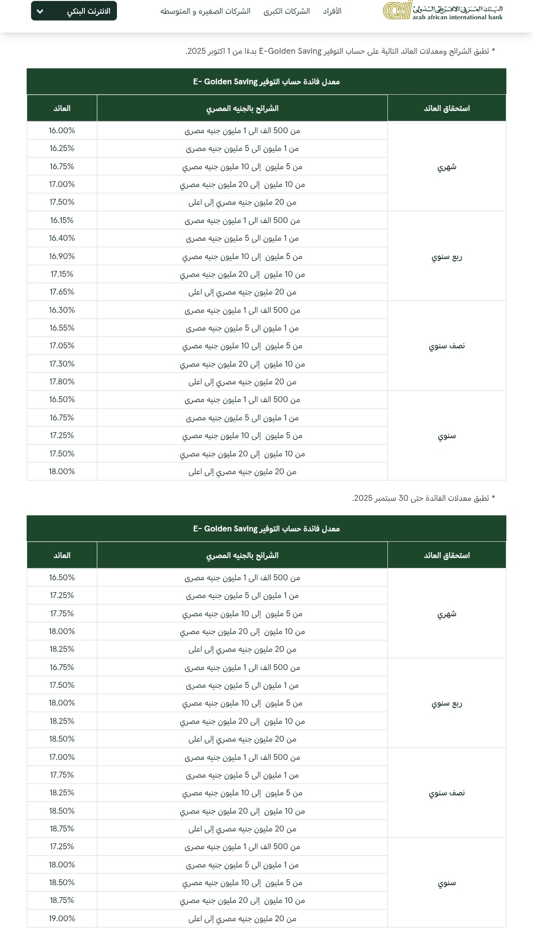 * من 5 ملايين إلى 10 ملايين جنيه: رفع من 16.00% إلى 16.25% — (+0.25 نقطة مئوية).