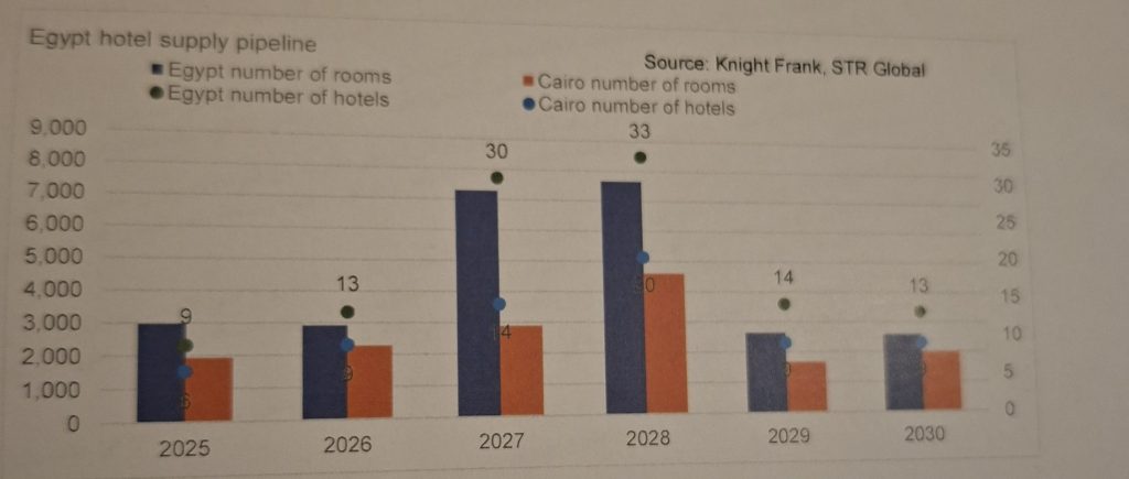 وأضاف في2027، سيتم إضافة 30 فندقًا جديدًا في مصر، 14 منها في القاهرة ،كما انه في 2028 سيتم إضافة 33 فندقًا، منها 10 في القاهرة، وهي الذروة المتوقعة في النمو.