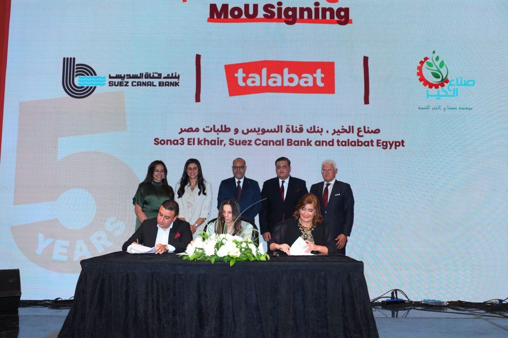 وقع اتفاقية التعاون عن بنك قناة السويس، الأستاذة نور الزيني، رئيس قطاع الشمول المالي، الاتصال المؤسسي والمسئولية المجتمعية، وعن شركة “طلبات -مصر” الأستاذة مها صالح، رئيس الاتصال والشؤون العامة والاستدامة، وعن مؤسسة صناع الخير للتنمية الأستاذ هاني عبد الفتاح، الرئيس التنفيذي للمؤسسة.