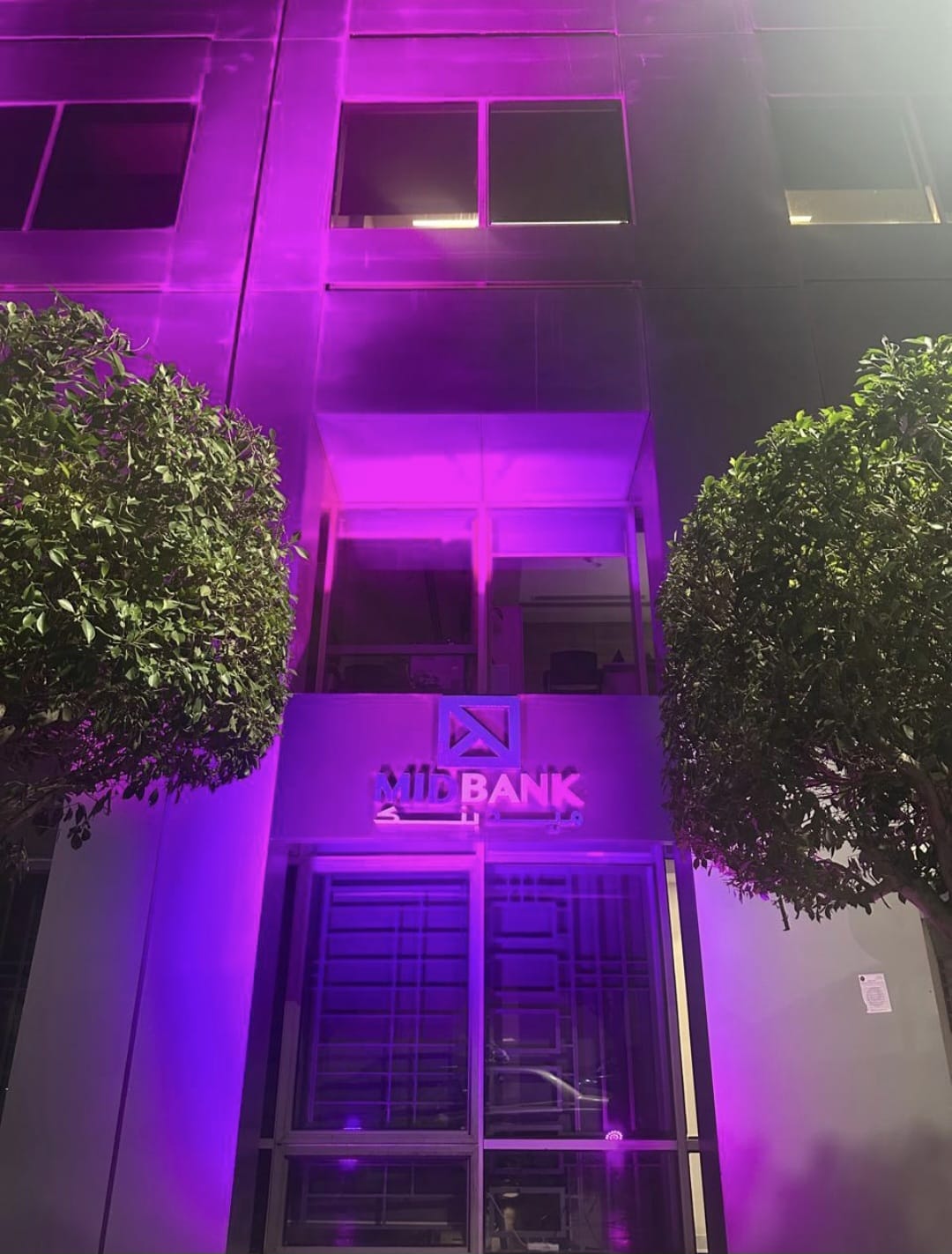 شارك ميدبنك في الحملة العالمية للتوعية بسرطان الثدي، من خلال إضاءة أحد فروعه والمركز الرئيسي الرئيسية باللون الوردي، بالتزامن مع فعاليات شهر أكتوبر، الذي يُعد شهر التوعية العالمي بسرطان الثدي.