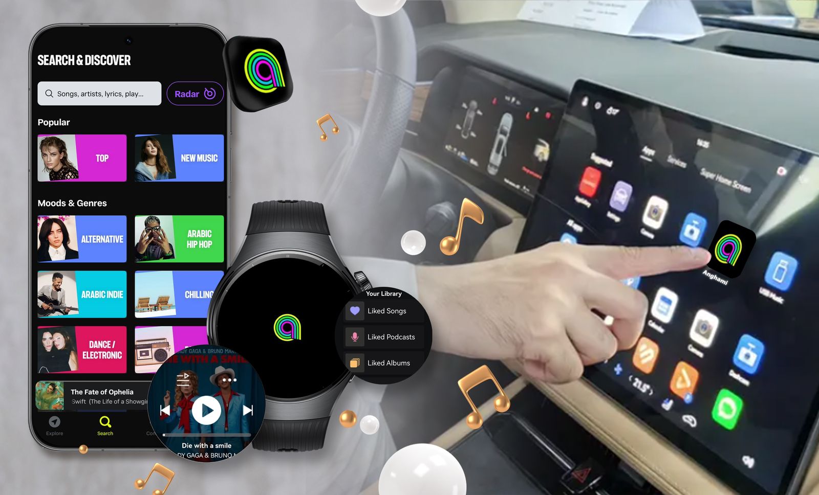 كما بدأ التعاون بين الشركتين بإدراج تطبيق “أنغامي” على متجر AppGallery. ثم تطور ليشمل منظومة “هواوي” المتكاملة من الهواتف الذكية. والأجهزة القابلة للارتداء، والسيارات المتصلة. وفي عام 2021، أطلقت “أنغامي” أول تطبيق مخصص للساعات الذكية العاملة بنظام HarmonyOS من هواوي. لتتيح للمستخدمين التحكم الكامل في تشغيل الموسيقى واستكشاف المقاطع الجديدة مباشرة من معصم اليد. في خطوة تُعد الأولى من نوعها في المنطقة.