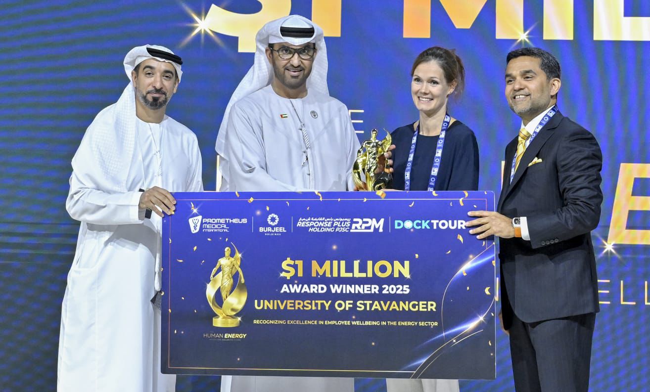 حصدت جامعة ستافنجر النرويجية جائزة الصحة والعافية للطاقة البشرية البالغة قيمتها مليون دولار أمريكي والأولى من نوعها على مستوى قطاع الطاقة، تقديراً لجهودها الريادية في توفير حلول مبتكرة تُسهم في تعزيز الصحة النفسية والجسدية للعاملين في القطاع حول العالم.