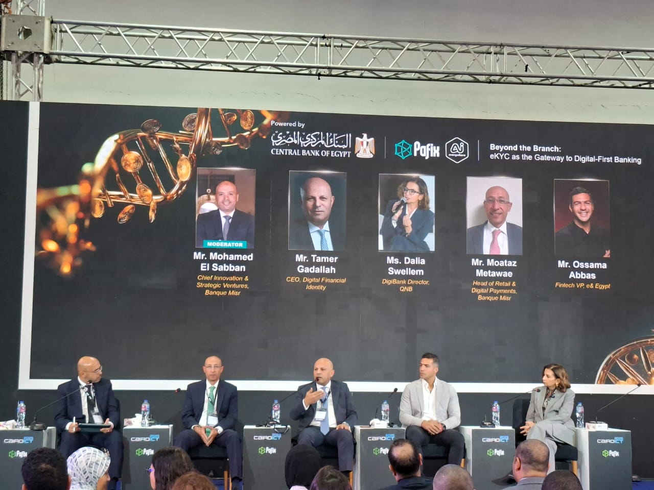 أدار الجلسة محمد الصبان، رئيس الابتكار والمشروعات الاستراتيجية ببنك مصر، بمشاركة تامر جادالله، الرئيس التنفيذي لشركة Digital Financial Identity، وداليا سويلم، مدير بنك QNB الرقمي، ومعتز متولي، رئيس قطاع التجزئة والمدفوعات الرقمية ببنك مصر، وأسامة عباس، نائب رئيس قطاع التكنولوجيا المالية بشركة e& مصر.