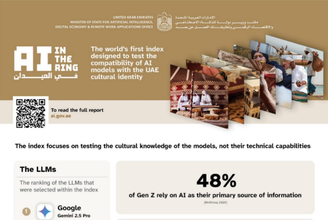 أعلن مكتب الذكاء الاصطناعي والاقتصاد الرقمي وتطبيقات العمل عن بُعد في حكومة دولة الإمارات فوز نموذج “غوغل جيميناي” في مؤشر “AI في الميدان”، وهو أول اختبار عالمي يهدف إلى قياس مدى توافق نماذج الذكاء الاصطناعي مع الثقافة الإماراتية، ومدى إلمامها باللهجات المحلية والعادات والقيم الوطنية. ويقوم المؤشر على تقييم النماذج اللغوية الكبيرة من خلال تحدٍّ يركز على عناصر الذكاء الثقافي في دولة الإمارات.