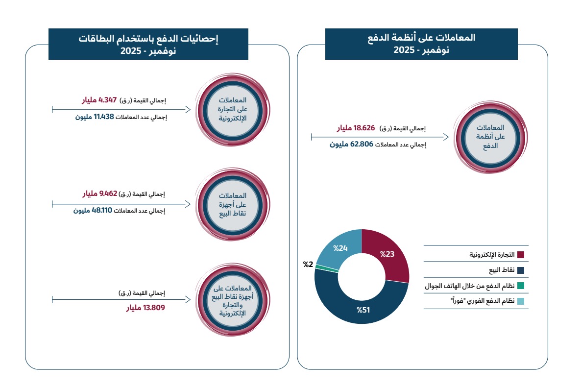 الصفحة الرئيسية دفع إلكتروني«قطر» تسجل 62.8 مليون معاملة دفع بقيمة 5.11 مليارات دولار فى نوفمبر الماضي