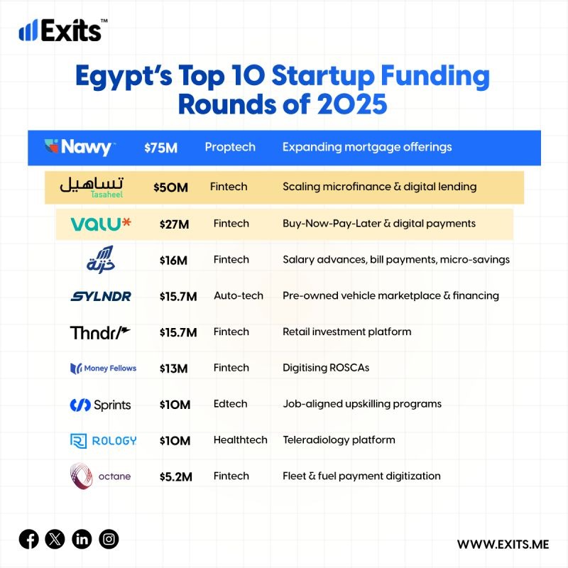 الصفحة الرئيسية رئيسي«إكستيس مينا» تكشف أكبر 10 جولات تمويلية للشركات الناشئة في مصر خلال 2025
